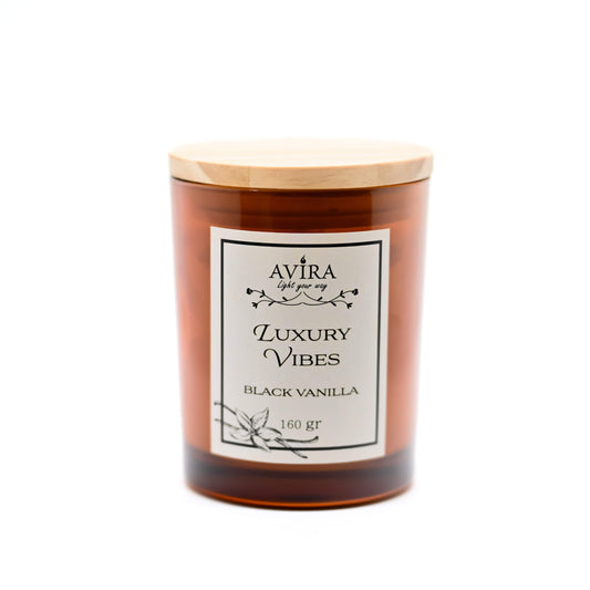 נר בניחוח בלאק ונילה - בכוס אמבר ומכסה עץ | 160 גרם