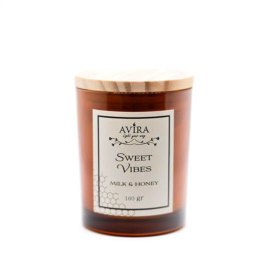 נר בניחוח חלב ודבש - בכוס אמבר ומכסה עץ | 160 גרם
