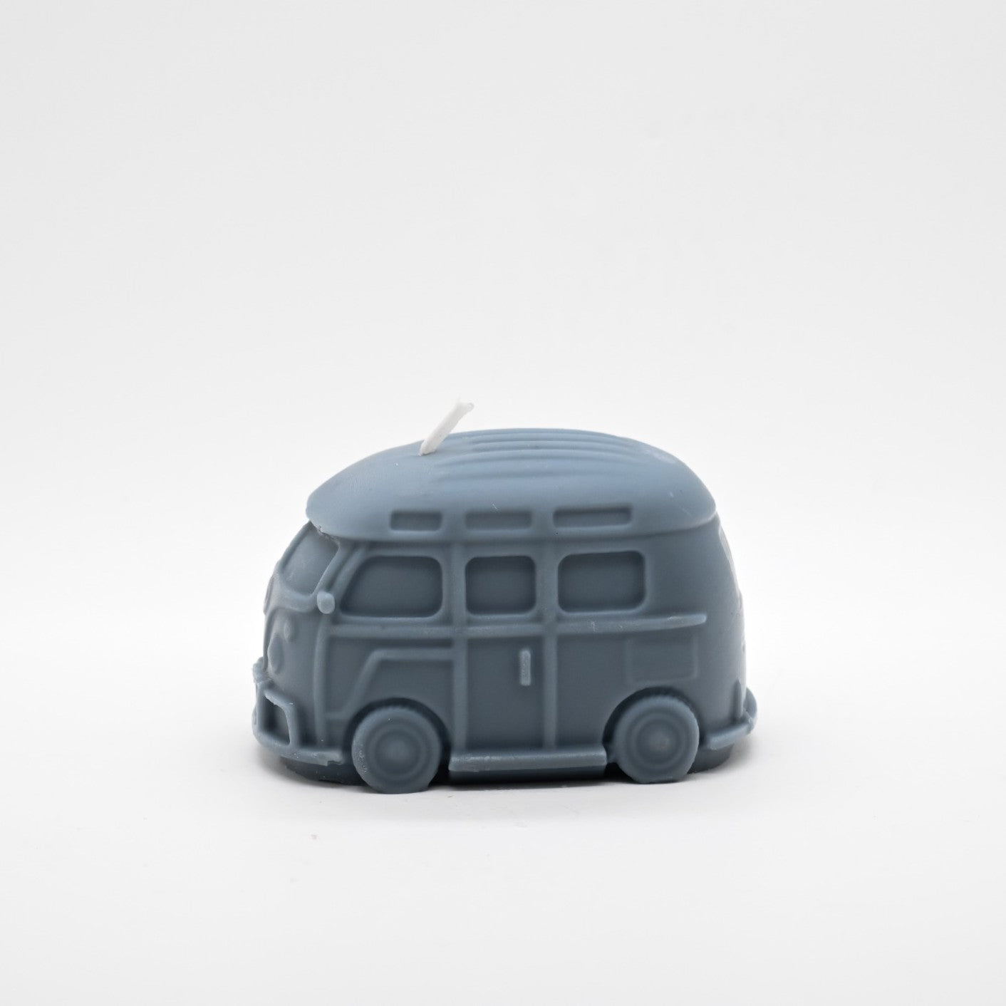 נר בצבע שחור-אפור מטאל בניחוח בלאק ונילה מדהים, מעוצב בצורת מיניבוס מגניב!